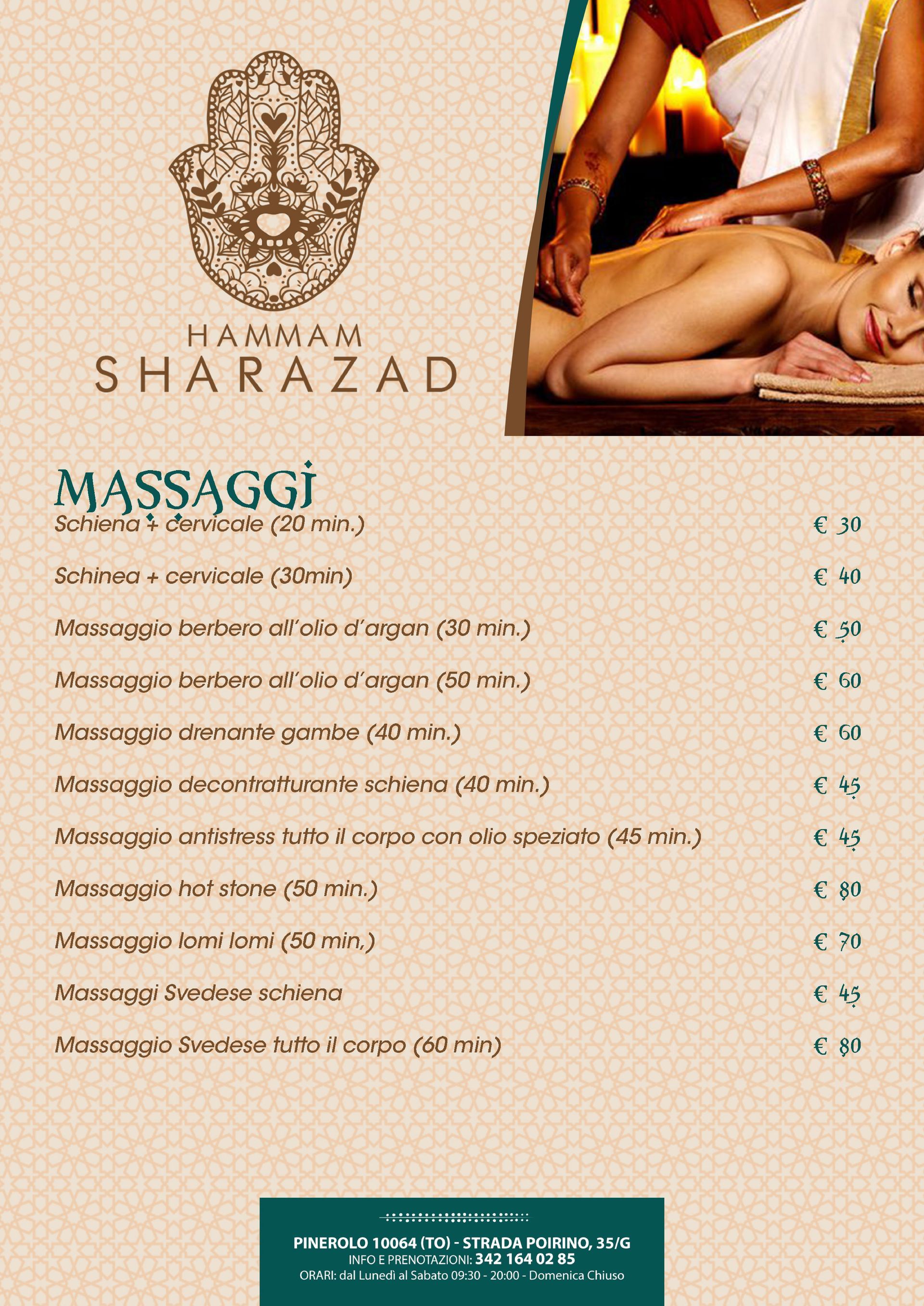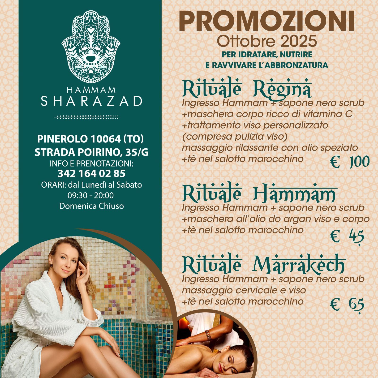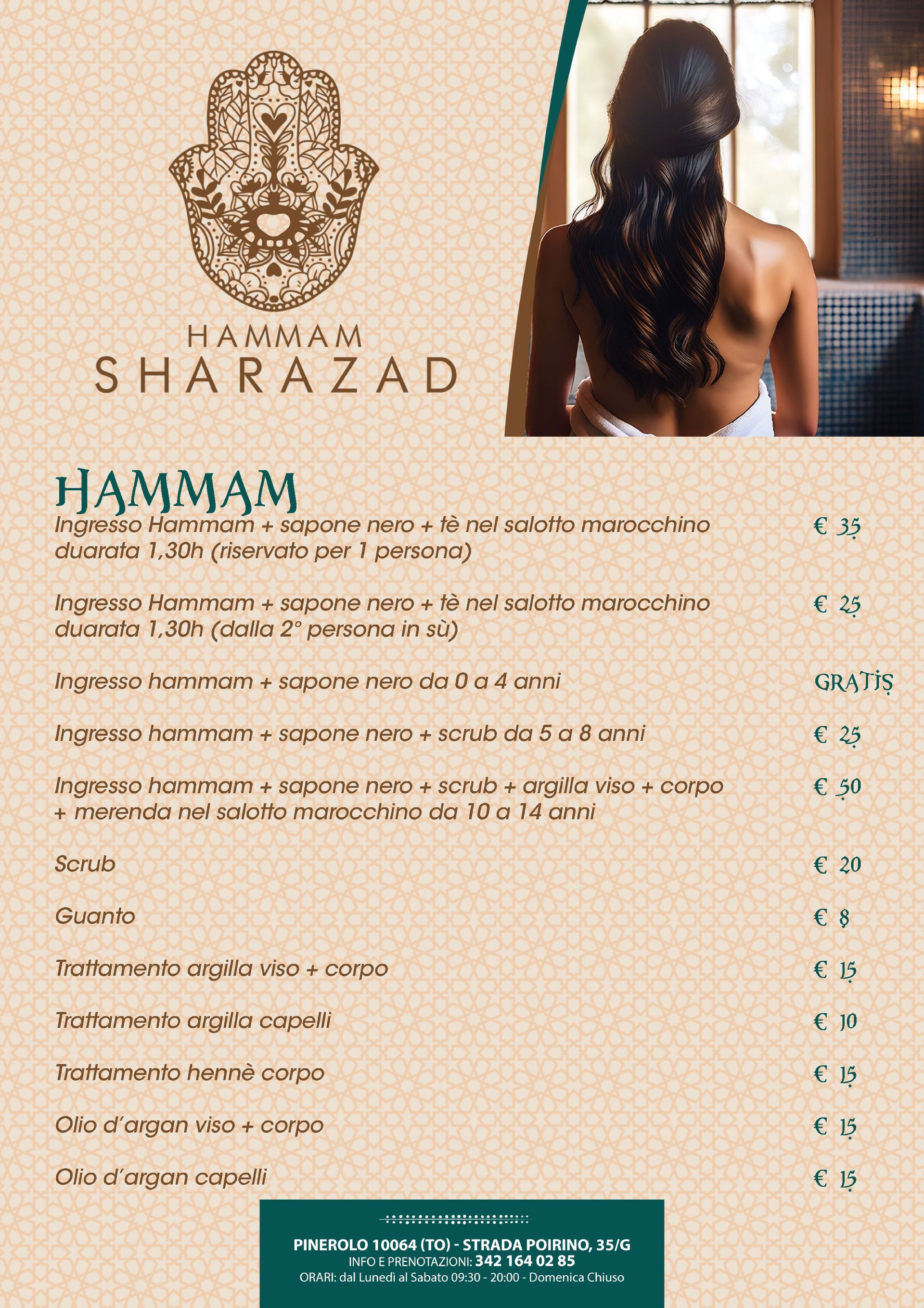Hammam Sharazad con sede a Pinerolo, in provincia di Torino, è un centro benessere che offre un ambiente confortevole e rilassante dove lasciarti coccolare dai tanti trattamenti gestiti da professionisti. Ti mettiamo a disposizione la competenza dei vari operatori del centro benessere per sottoporti a trattamenti che permetteranno di nutrire la mente e il corpo, ma anche l'anima per riprovare quella sensazione di benessere che ti fa stare bene e ti consente di avere un atteggiamento propositivo.